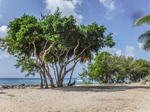 Ocean view from the ground floorof Block 3 at the Sugar Mill The Manchineel Trees are poisonous and are marked with a red painted band round their trunks. They provide excellent natural windbreaks and their roots stabilize the sand thus helping to prevent sand erosion.