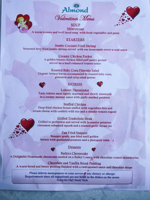 2016 The a la carte Valentine menu at the Reef Restaurant