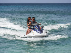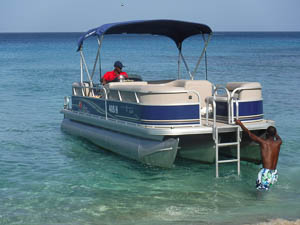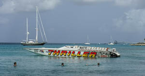 The Thriller 05 Powerboat - an exciting trip to swim with the turtles BUT you have to wade chest high to board it. This is the fastest adventure boat ride in Barbados to date