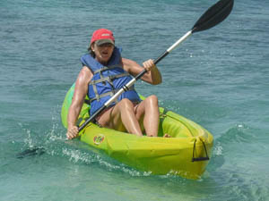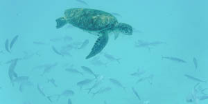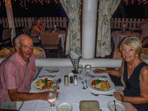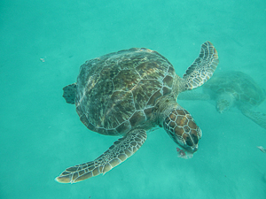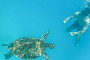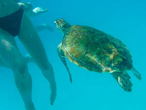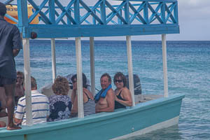 Our friends Jean & John leaving for their complimentary trip in the glass bottomed boat to swim with the turtles. |