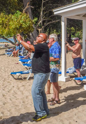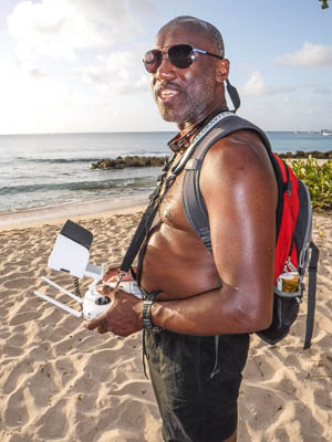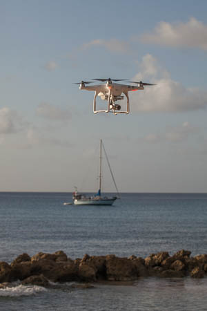 Hotel guest Mark Sugden-Best flying his drone to run the battery down prior to his flight home. Mark runs Treetops Recording Studio for more details see www.treetopsstudio.co.uk under recent projects there is amazing video footage shot at Almond Beach Resort |