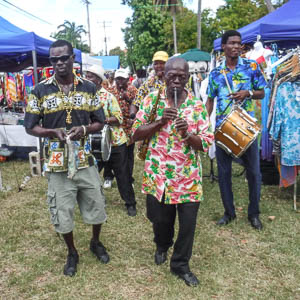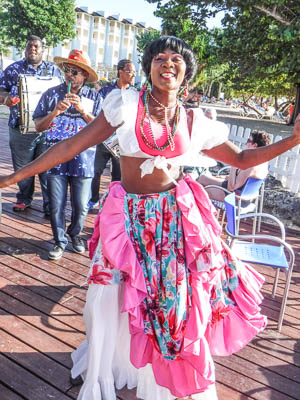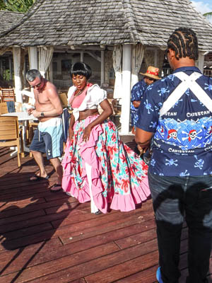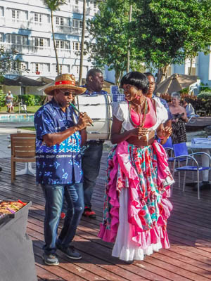 Bajan Bacchanal Lunch in the Reef Courtyard with dancing and music by Mother Sally and Virtuosity |