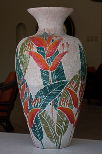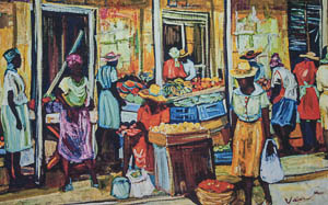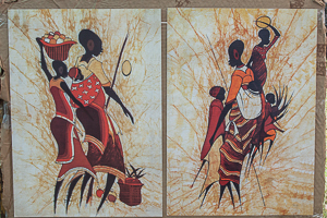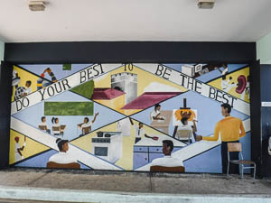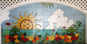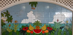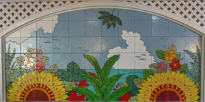 One of the colourful Bajan Paintings decorating the walls in the Horizon Restaurant and above are photos of the tiling in the Horizon servery |