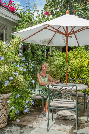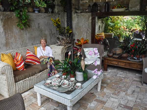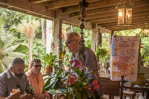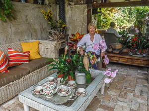 Anthoney Hunte entertains his guests with rum punch or water in the pavilion overlooking the gardens |