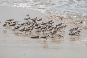 Sandpipers are frequently seen running to and fro along the shoreline |