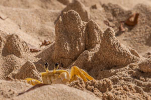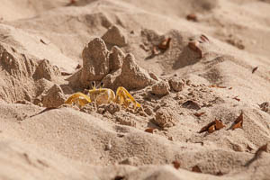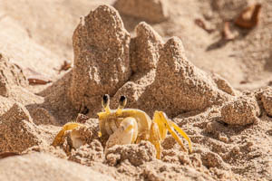 Sand crabs can often be spotted on the beach and rush back to their holes if approached |