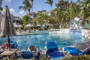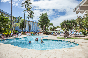 The pool at Waves on the opposite side of the resort to the main sea view side |