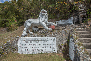 The statue of the lion was carved out of a single piece of rock in 1868 by an officer at the Gun Hill Signal Station in the parish of St George |