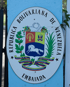 The Embassy of the Bolivarian Republic of Venezuela a modest building compared with those surrounding it |